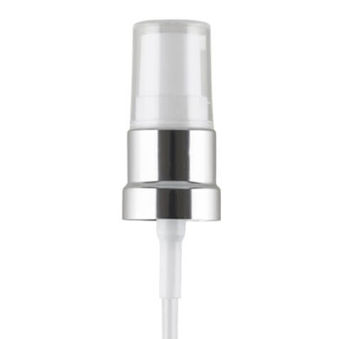 The GL18 White Treatment Pump with Gloss Silver Collar and Clear Overcap is a sophisticated and functional dispensing solution, perfect for a range of personal care and skincare products. Designed to complement premium product lines, this pump combines practical performance with an eye-catching aesthetic.