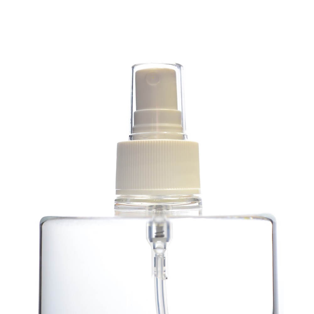 28/410 White Ribbed Atomiser Sprayer with Clear Overcap at BlueSky, designed for fine mist applications such as toners, facial sprays, body sprays, and light serums. The ribbed design ensures a secure grip, while the clear overcap keeps the nozzle protected and clean when not in use. With a 200mm dip tube and 0.12ml spray output, this atomiser delivers consistent misting with every use. The 28/410 neck size makes it compatible with a variety of bottles, offering flexibility for personal care, cosmetic, and home care products.