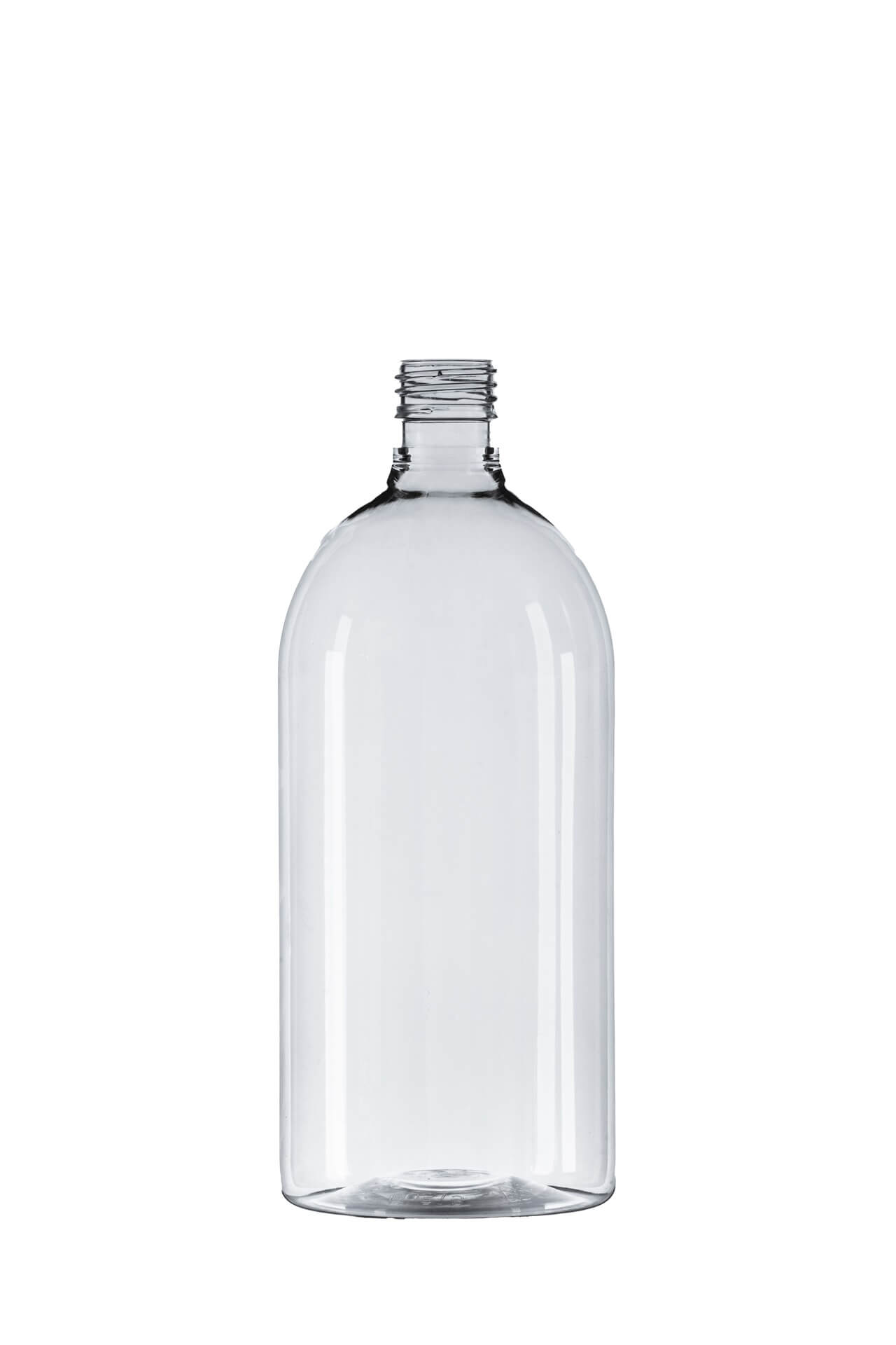 The 1L Clear PET Pharma Sirop Bottle with an ROPP28 neck is a packaging solution for pharmaceuticals and health care liquid formulations. Made from clear PET, this bottle provides excellent product visibility while being lightweight and shatterproof, ensuring safe and secure packaging.