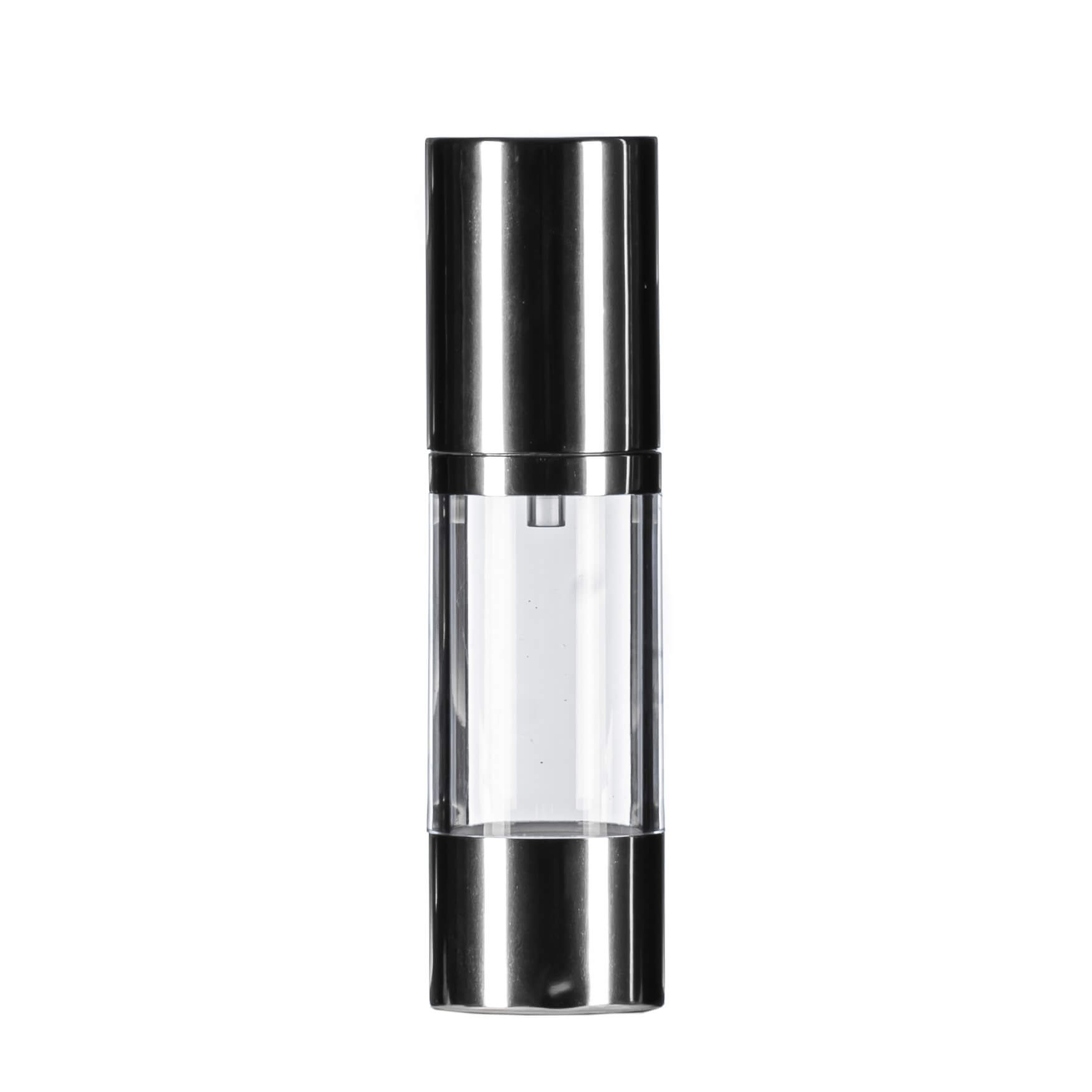 The sophisticated design features a Gloss Silver Overcap, Collar, and White Actuator, creating a modern and luxurious aesthetic to enhance your brand’s appeal. Its airless technology minimises product waste, ensures hygiene, and protects formulations from contamination, making it suitable for high-performance and sensitive products.