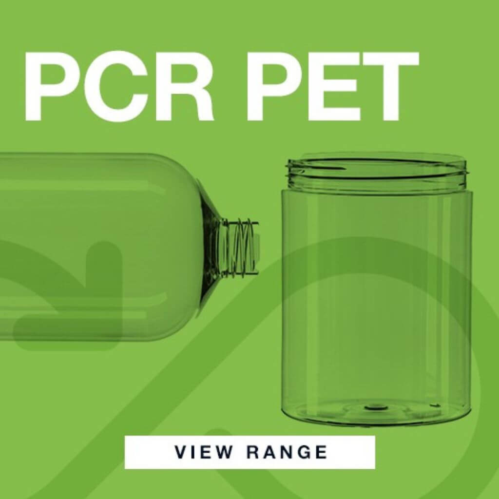 Our standard virgin PET ranges are available with 30% recycled content. The initial launch was with our Straight Sided Jar range, with other product categories following. You can be reassured that the inclusion of recycled content in our plastic ranges will not affect the integrity or quality of the products. PET is one of the easiest materials to recycle. Post-consumer recycled (PCR) PET, is even more environmentally friendly as it is manufactured from recycled plastic. It is increasing in popularity as brands adopt a sustainable approach to packaging.